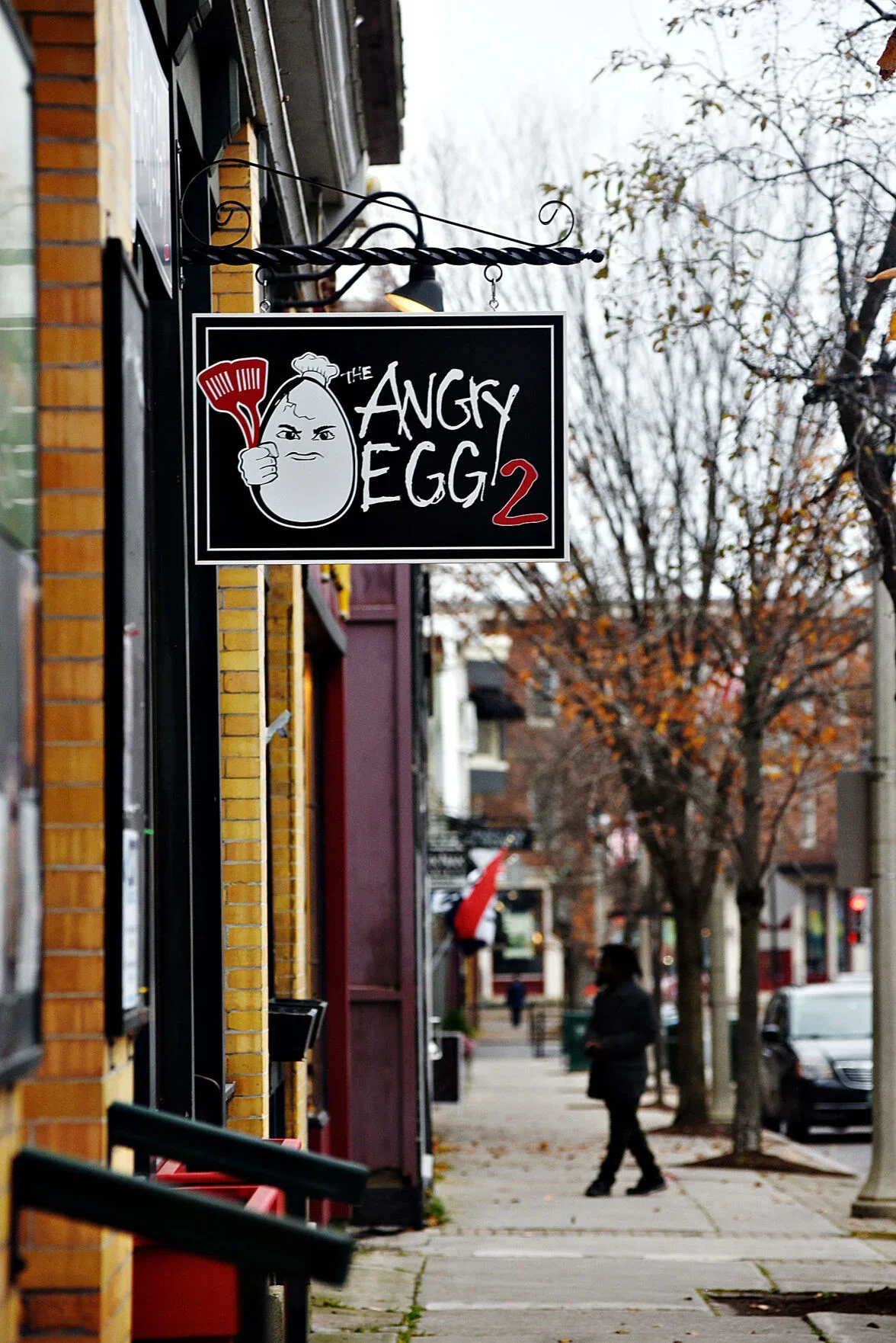 One morning, Liz, Steve, and their children were making breakfast when they noticed one egg that was out of control — it looked… well, ANGRY! Fast forward to 2018, and Liz, Steve, and their two children opened the doors to The Angry Egg in Downtown Manchester.